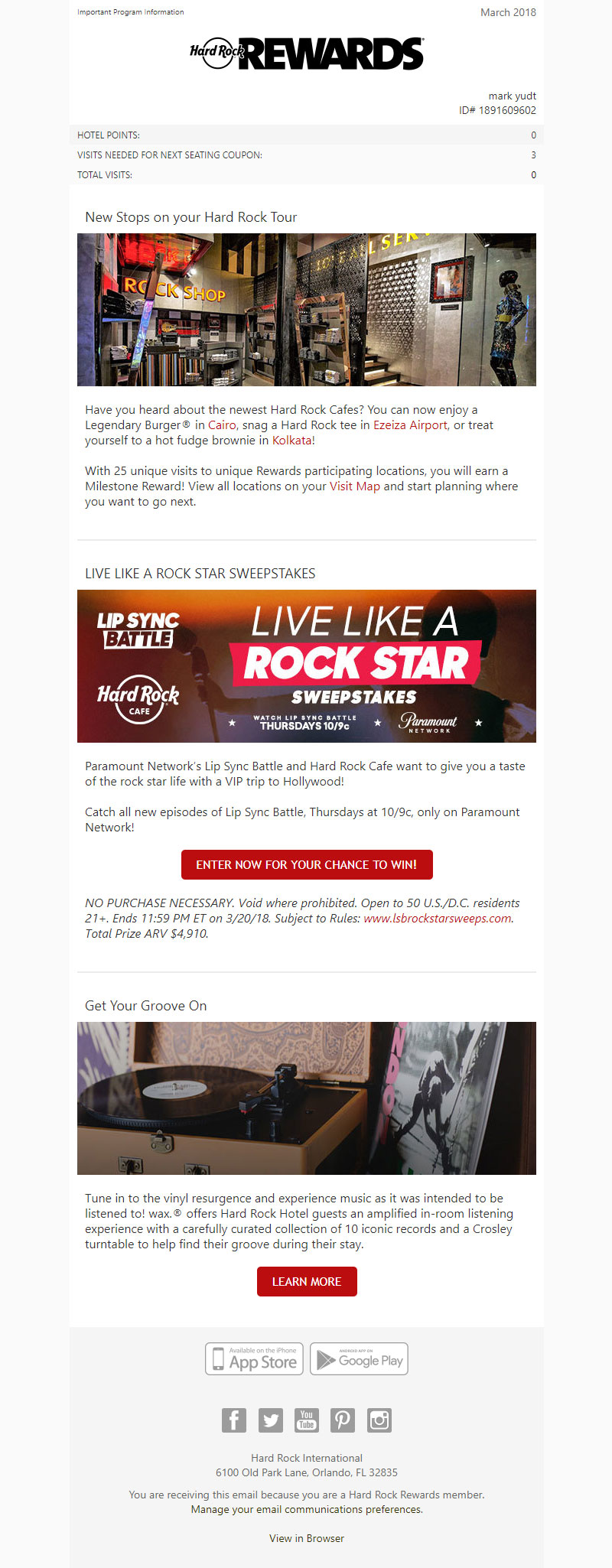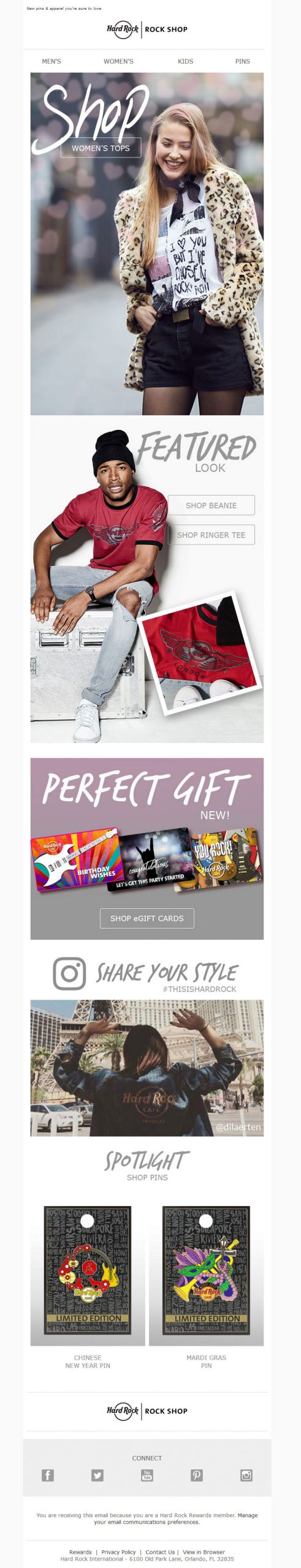 Hard Rock Rock Shop 2014 World Tour Gear email design